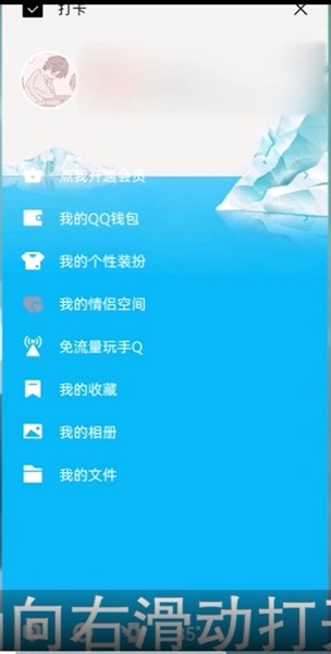 1、打开qq向右滑动打开隐藏菜单然后进入设置之中。