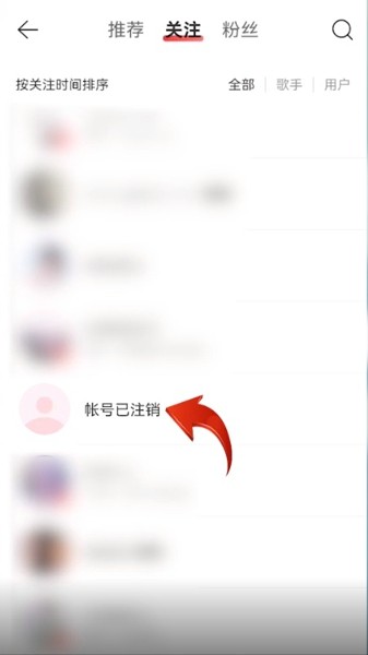 3、选择关注然后点击账号已注销进入即可看到注销账号的模样。