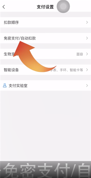 第二步:选择支付设置,再点击免密支付/自动扣款,