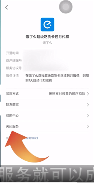 第三步:点击饿了么自动续费服务,点击关闭服务就可以成功取消了。