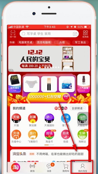 1.首先打开淘宝app,点击右下方【我的淘宝】,