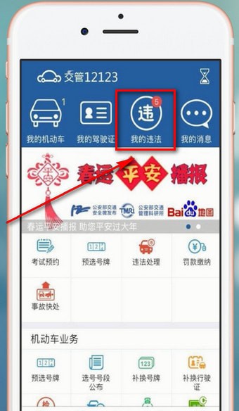 1.首先打开登录过账号的【交管12123】APP,然后点击【我的违法】查询,