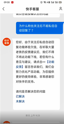 快手没有自动回复是因为现在快手已经取消这个功能了,由于关注后私信自动回复功能体验欠佳,官方在听取大量老铁的反馈建议后,最后不得不将此功能下线,所以是官方取消了这个功能,并不是你一个人没有,而是现在所有人都没有私信自动回复的功能了,你可以在快手上提建议,说不定官方那天又会将自动回复这个功能恢复在快手上使用。
