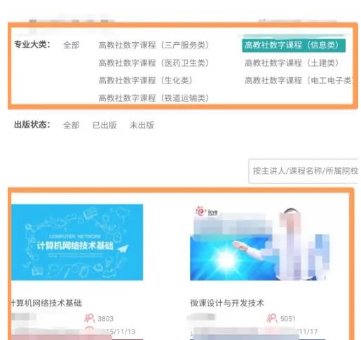 4、进入专业课程页面选择课程进行观看。