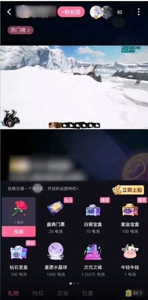 3、点击投喂主播一个b坷垃开启粉丝团特权然后投喂入团即可。