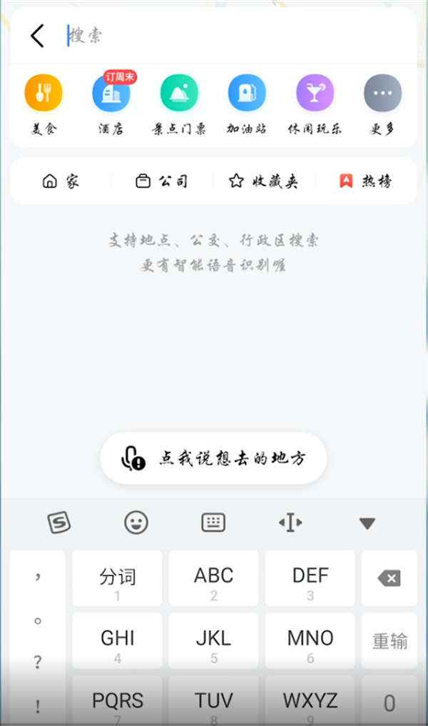 在高德地图中回到主界面的【首页】中,点击首页最上方的查找搜索栏,这时搜索栏下方会出现【家】和【公司】等选项,点击【公司选项】便可进入公司地址设置界面。
