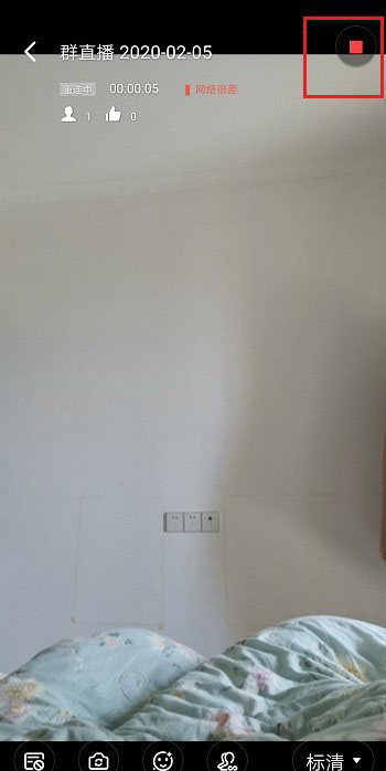 3、进去群直播界面,可以进行直播内容,直播完成后,点击右上方的结束直播图标,可以进行结束直播: