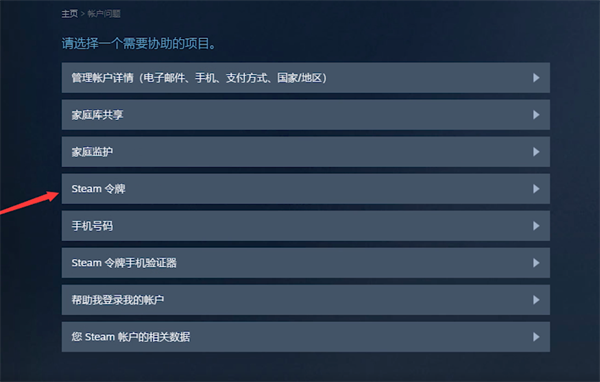 若是用户可以使用原来的旧手机,那么只需要再旧手机中解除令牌并在新手机中重新绑定即可,以下讨论无法使用旧手机的情况,在steam页面中点击上方的帮助选项,随后选择帮助选项中的steam客服,下拉steam客服选项并选择最下方的我的账户。