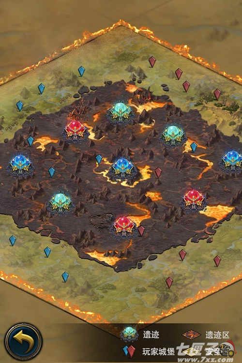 遗迹区:坐落在战场的中间区域,顾名思义,遗迹都分布在遗迹区之中,遗迹区中的领主,可以自由侦察、攻击、支援遗迹,也可以侦察、攻击、支援其他领主。在遗迹区中的领主只要被破城,就会自动迁入到安全区中。