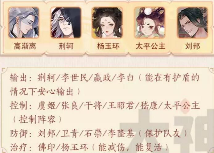 目前来说,高渐离基本是属于百搭,竞技推荐像李隆基、佛印、卫青、刘邦、这样的名士搭配,就是要么我方受伤减少,要么敌方输出减少。