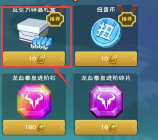 4、找到反引力碎晶礼盒,需要10金币购买一个。