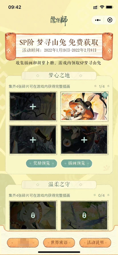 1、在小程序收集碎片完成插画拼图,每完成一张拼图获取对应插画*1,胡萝卜糖*5。