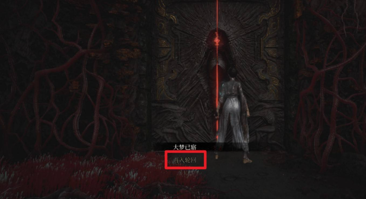 此处如果选择了错误答案【再入轮回】,就会被传送到一个特殊的区域,如果已经获得和结局有关的道具,则可以在此处解锁对应的结局。因此本结局和答题成就互斥,如果想要一周目内全成就,需要通过SL存档来达成。