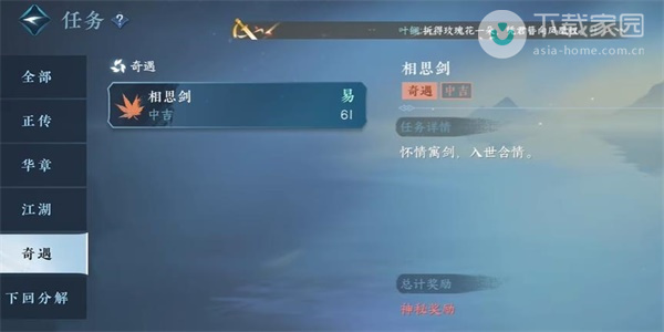 相思剑奇遇完成步骤: