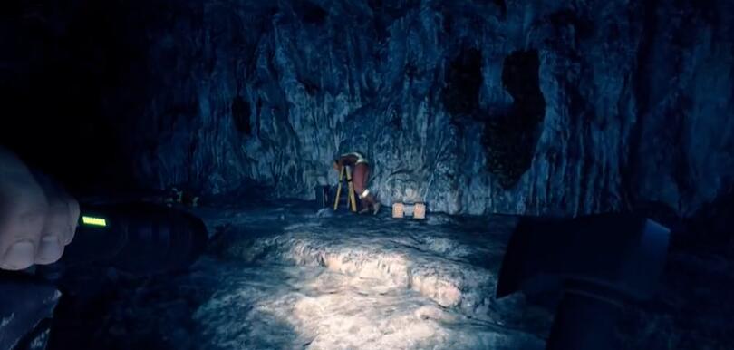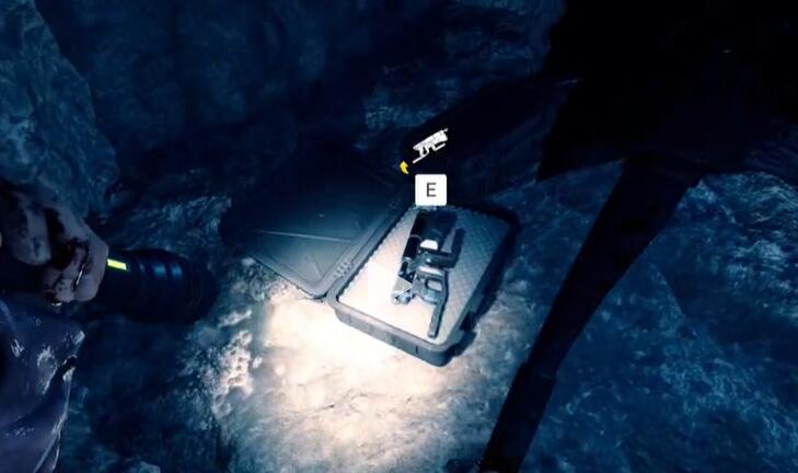 5、之后只需要一直往前走,消灭挡路的野人,就能在山洞最后面捡到绳索枪。