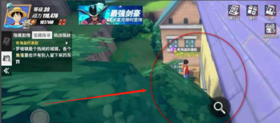 1、我们可以先去罗格镇西边角落位置,来到陈旧的杂货堆后选择放大镜图标查看。