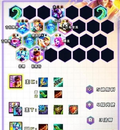 (2)羁绊:5迪斯科、4耀光使、3法师