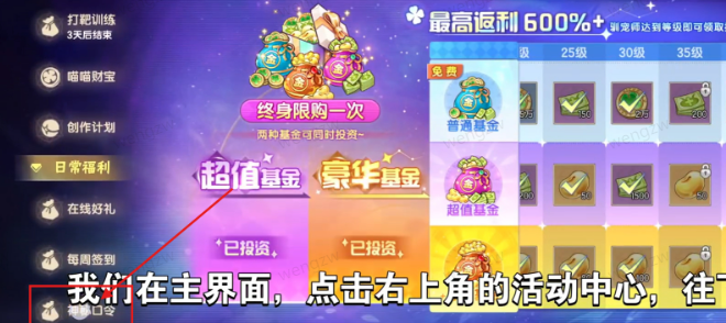 我们需要把新手指引做好了以后去主界面找到右上方就可以看到【活动中心】按钮。