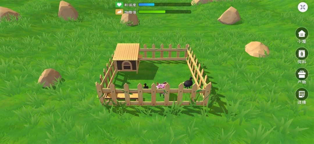 和谐度:和谐度高的时候会加快生产效率,和谐度低的时候动物会停止生产,和谐度会随着时间下降。