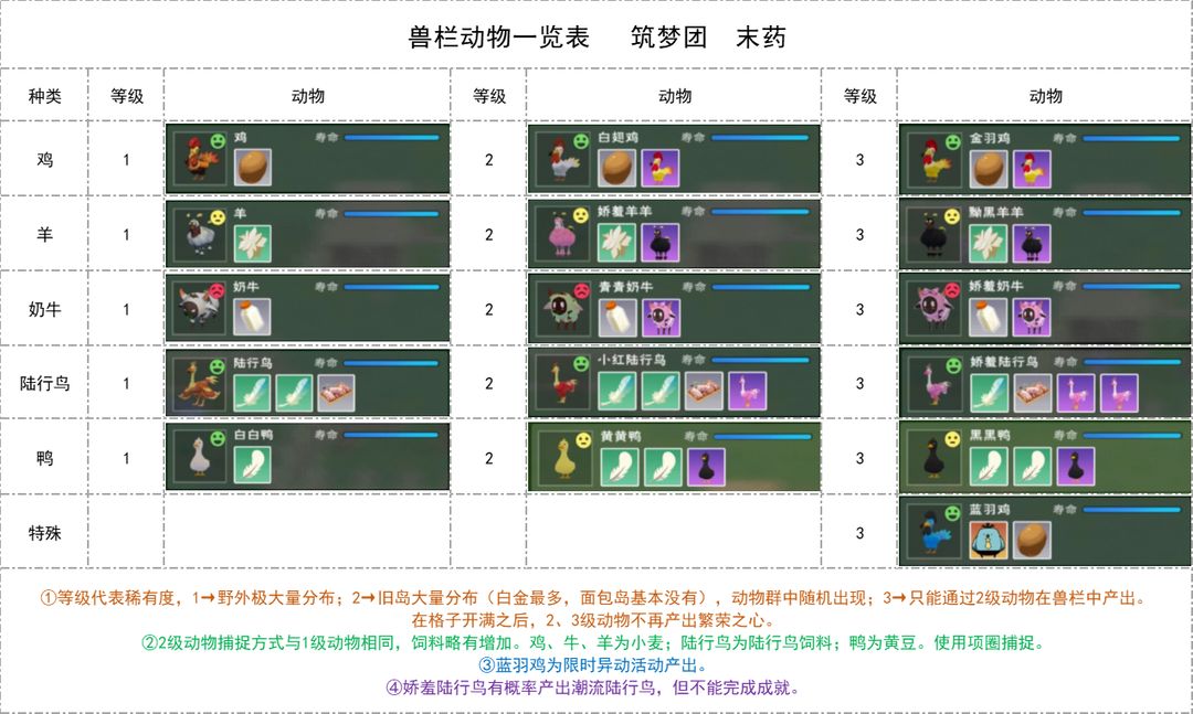 ②如果没有对应宠物之心的需求,就主养绿色心情的2级动物和蓝羽鸡,产出的3级动物暂时留起来,按照对应的组合放置。