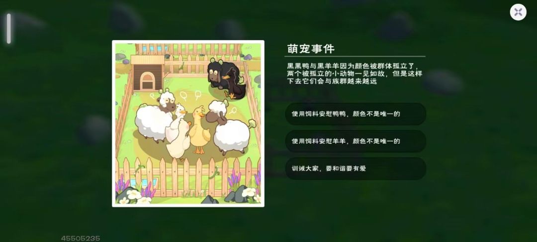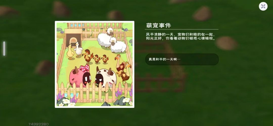 组合事件:饲养对应的动物组合(与图片内的动物有关系但不完全相同)有概率触发,奖励固定(可选)。如下图中,可选娇羞奶牛、娇羞陆行鸟、娇羞羊羊的任意一种,获得对应的宠物之心。