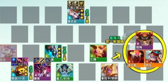 开始的时候要是可以获取这个反曲弓那么可以玩的方案还是有很多的,中期可以选择3蜜蜂+2咖啡或者佐伊+波比玩了,或者用酸辣粉+莉莉娅也是可以的。