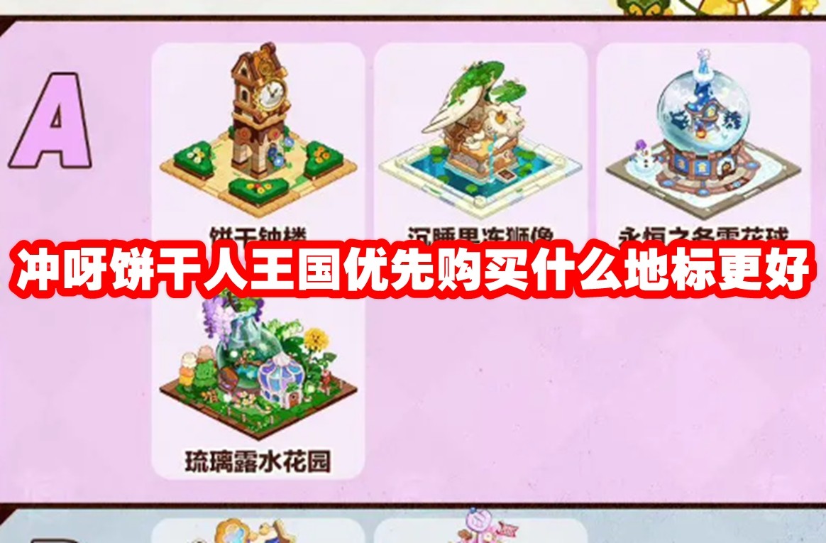 冲呀饼干人王国优先购买什么地标更好?冲呀饼干人王国推荐优先购买饼干钟楼、沉睡果冻狮像、永恒之冬雪花球、琉璃露水花园。很多小伙伴还不知道冲呀饼干人王国优先购买什么地标更好,下面给大家整理了冲呀饼干人王国优先购买地标推荐,让我们一起来看看吧。