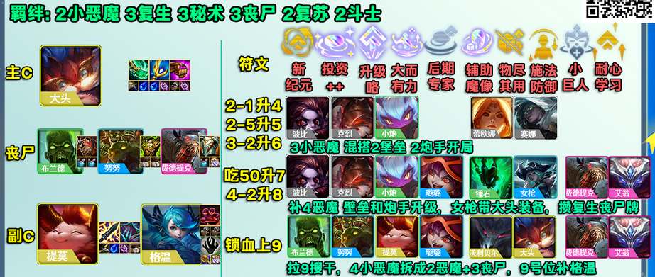 2、羁绊效果:2小恶魔3复生3秘术3丧尸2复苏2斗士;