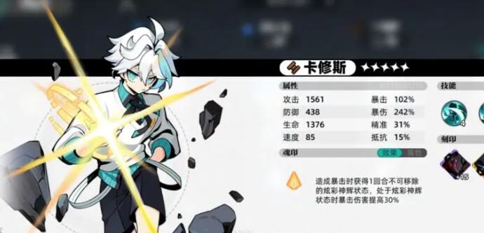 卡修斯:80级,暴击刻印,2和3技能升到5级,暴击叠到100%