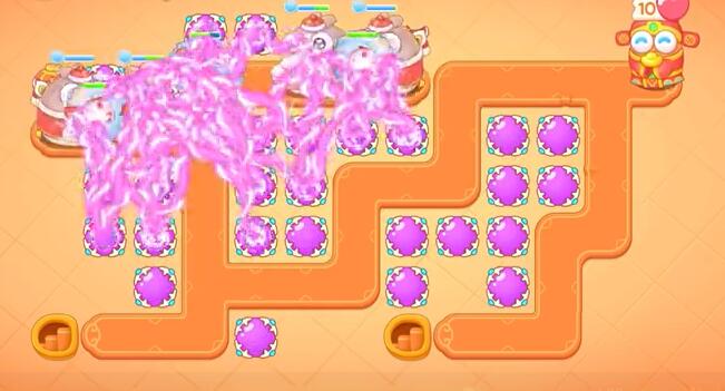 保卫萝卜4新春厨艺秀第十二关是很容易卡关的位置,前期感觉还好,但到后期很容易崩盘,建议先在两个出口中间的空位,以及中间下方的空位放置魔法球,优先用下方的魔法球清理周围障碍。等下方魔法球清理完周围障碍后,再放置新的魔法球,继续清理右侧区域。