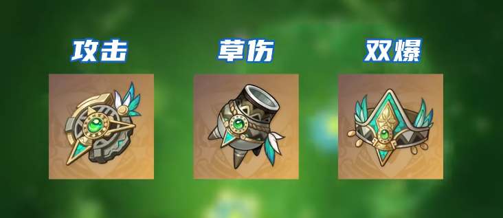 主词条最佳搭配是攻击砂、草伤杯、双爆头。攻击力建议堆到2400以上,如果没到的话可以选择攻击杯。