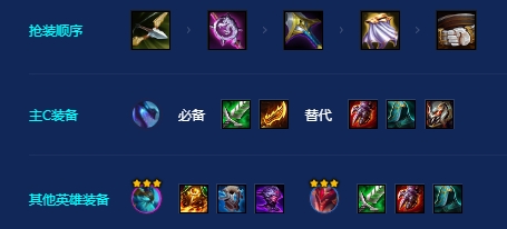 前期4斗配羁绊过渡,赛芬装备给奥拉夫带,中期6斗配4幽影,9级大成