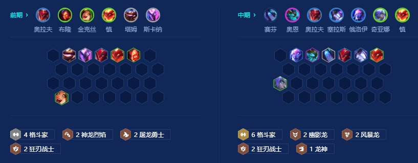 金铲铲之战S14上分阵容推荐,当前是复刻S7版本的巨龙之巢,本篇分享的8格斗家4幽影龙2狂刃战士的8斗赛芬阵容,8斗的羁绊效果,使得赛芬能抗能打,且不用担心被刺客切,比较适合新手,阵容口令:0sHXHM。