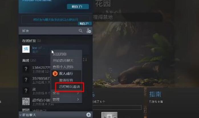 4、然后按Shift+Tab键打开好友界面,右击选择远程邀请就可以使用了。