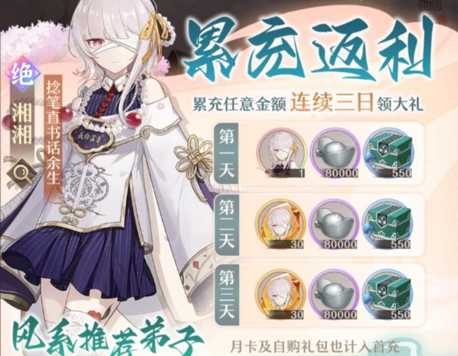 对于平民玩家而言湘湘是一个强力的开荒角色,任意充值金额就可以获得,在前期资源不充足的情况下到第三天就可以顺利升阶,培养成本也比较低。