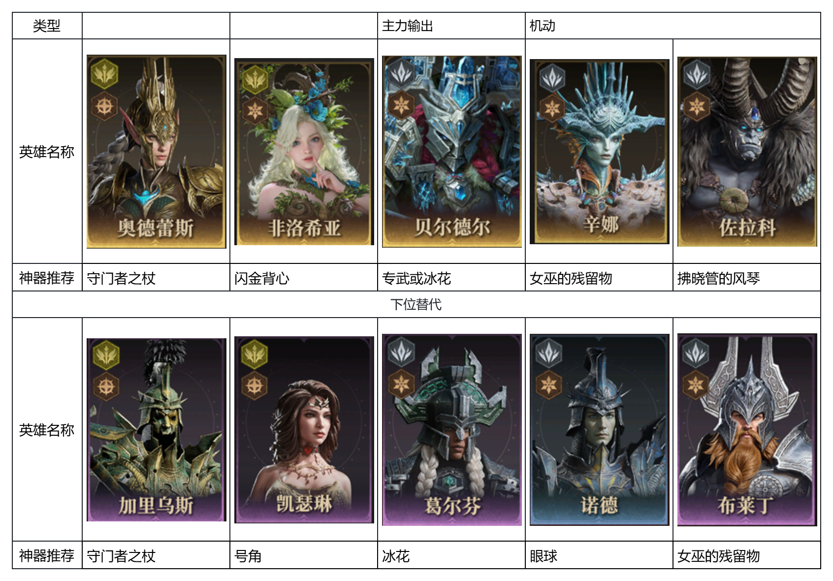 冰太阳(贝尔德尔),造成冰冻元素伤害的英雄,冰爆的特色就是如果自身有冰晶buff,那么释放战技的时会消耗一层冰晶继续释放战技,如果冰晶不断,就会一直释放战技,是一个通过战技来输出的体系。冰太阳有重击转重击伤害的被动,而且战技可以获得非常多的爆伤,是一个单体输出很爆炸的体系。