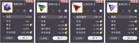 月卡佩戴的两种芯核--海胆芯核和三角芯核,是战力的主要来源。海胆芯核主词条固定为攻击,三角芯核主词条不固定,通常推荐培养暴击、暴伤、虚弱增伤为主词条的三角芯核。