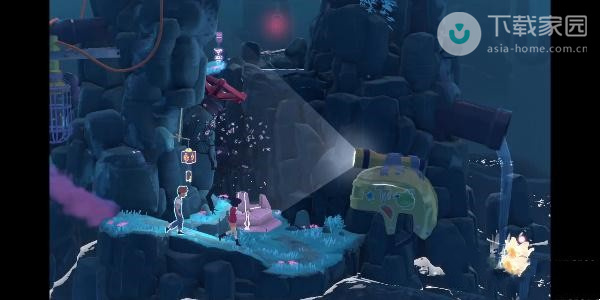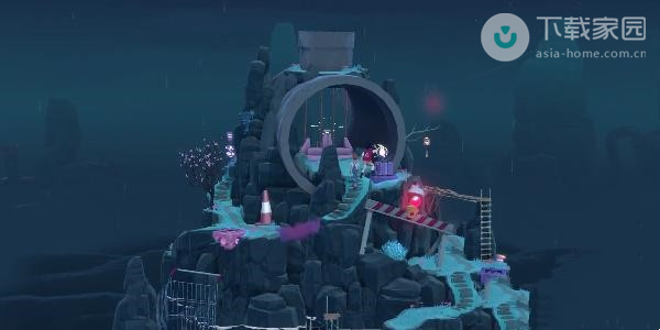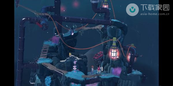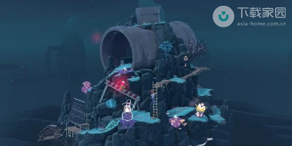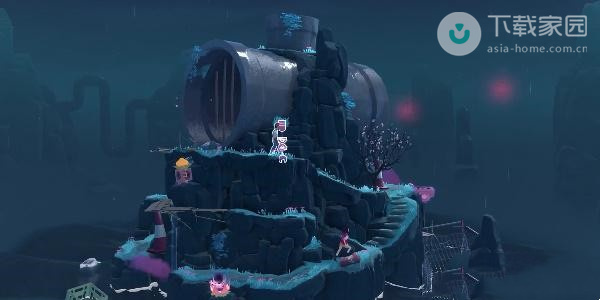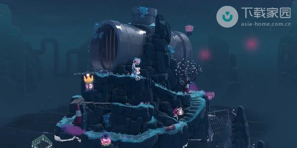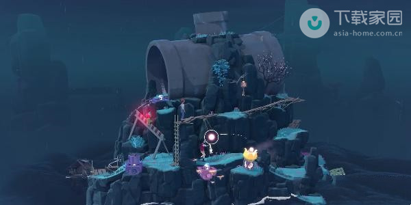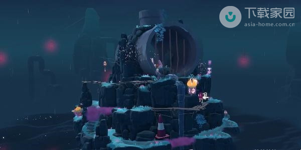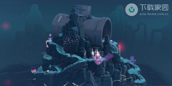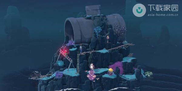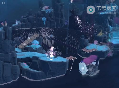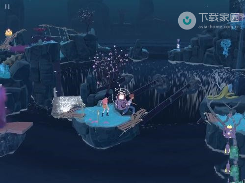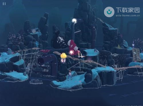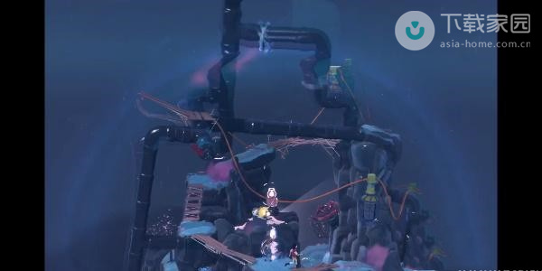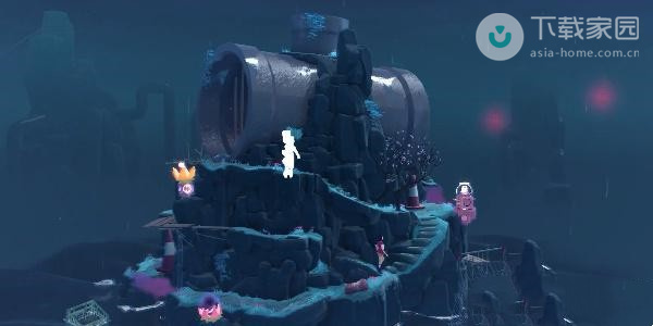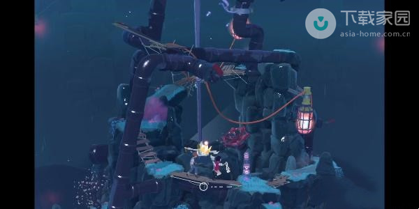 2、此时玩家需要向下走,走到第一处的迷雾位置,使用水滴来将灯亮起,之后即可过去了;