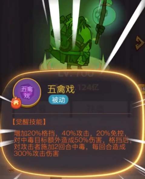 被动2 五禽戏:除非带专属,否则格挡都不合格带专属的话破甲又不够,只是一个挂毒、奶的辅助;