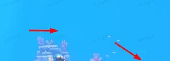 2、等到了一个石头缝隙位置,玩家要往右下方前进,一直朝下一直游;