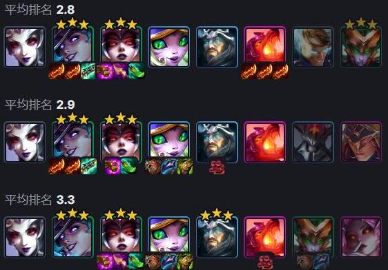 3、后期上9补充高战力五费卡这个时候的蛇女和辛德拉要三星,要不然打不出这个伤害的。