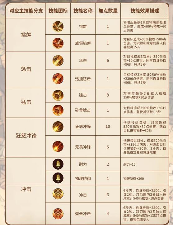 2、技能加点主要点猛击、狂怒冲锋和冲击。