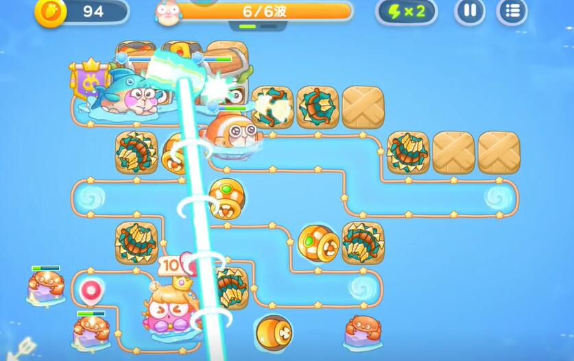 4、摧毁下方的障碍物,建造多重箭和鱼雷,对左下角的兔子进行清理。
