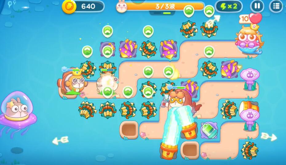 5、对更多的多重箭塔进行升级,清理掉所有的障碍物和兔子,完成第一轮的挑战。