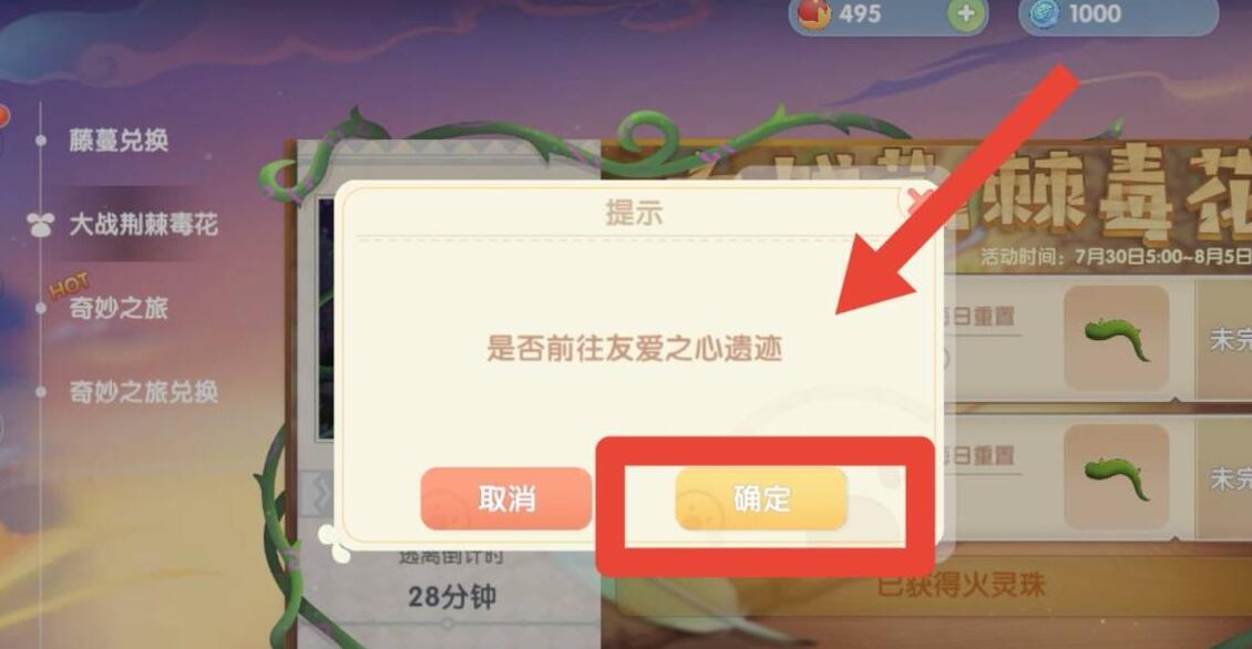 3、之后点击确定,即可自动前往友爱之心遗迹;