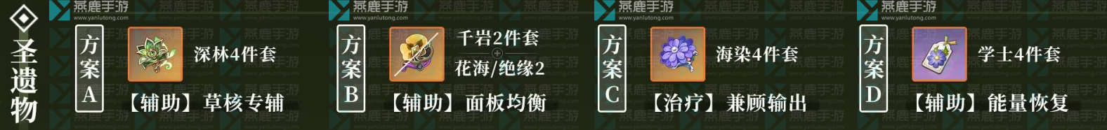 【草套4】:可以有效降低敌人的草元素抗性,辅助草系角色首选。