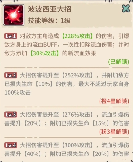 当波波西亚或者暗黑修女释放大招,一瞬间所有的流血buff,所有延时持续性伤害都会在一瞬间爆发,那伤害是很高的,一瞬间就可以结束战斗。