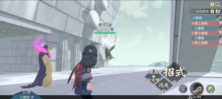 我们击败山葵结束就可以捉迷藏,到达雪峰神殿屋顶找山葵对话即可与Lv54勇士雄鹰对战
