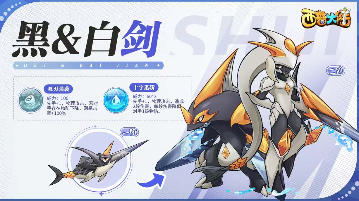 白剑·十字迅斩<绝招>:先手+1,物理攻击,造成2段伤害,每段伤害降低对手1级物防。