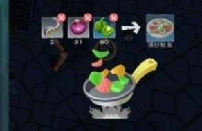 玩家将这三个材料放到一起就可以烹饪成爆炒鱿鱼了。
